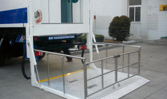 該類設備是一種液壓傳動,剪式升降、前后平臺可升降的機場特種地面保障設備,主要用于幫助行動不便的旅客上下飛機。該設備由汽車底盤、廂體、升降機構、前后平臺、液壓系統和電氣系統組成。